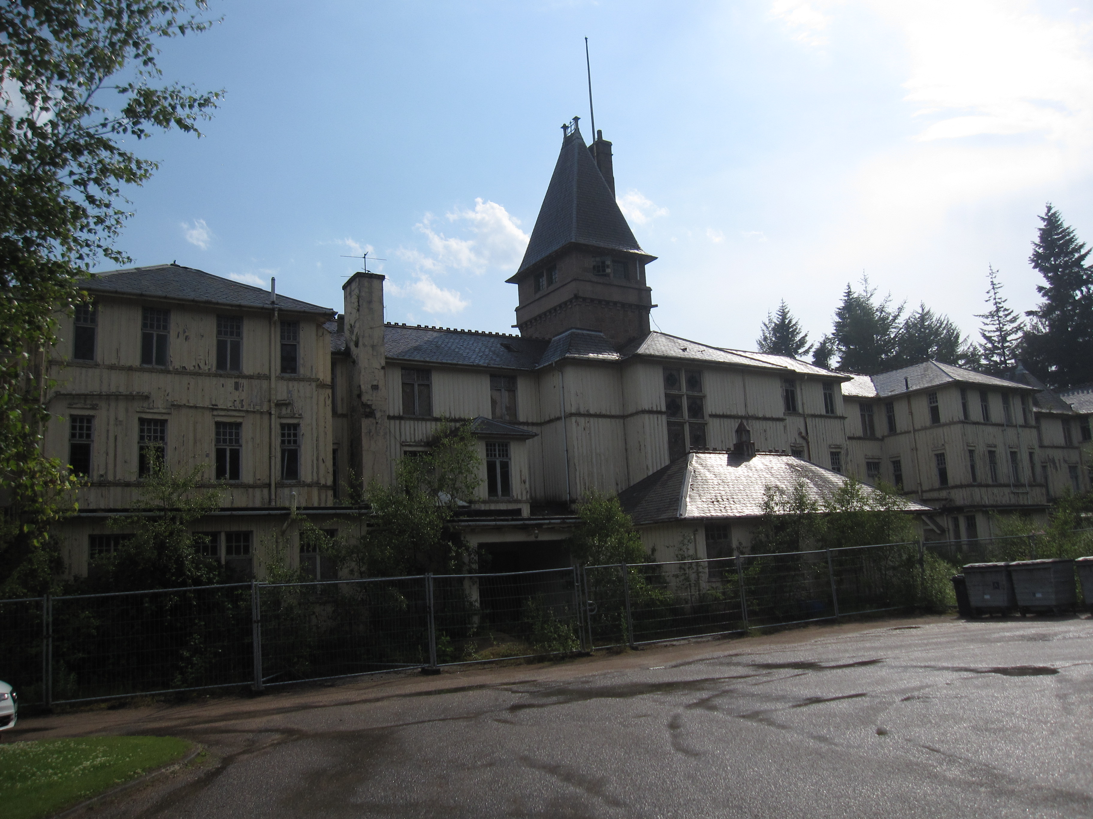 You can see an image of how it looked originally here, and some photos of the abandoned interior here. Resting among the pine trees on the edge of Banchory, the sanatorium was built in 1899-1900, and modelled on the pioneering sanatorium built in Nordrach in Germany. It was originally known as Nordrach-on-Dee, and was intended to provide fresh air, treatment and research in the battle against the scourge of tuberculosis. As treatments changed and the disease became less common, the sanatorium was no longer needed. Since then the building has had a spell as a luxury hotel, and then was used once more as a sanatorium during the Second World War, before becoming a convalescent hospital. It finally closed in 1998. This stunning building is Grade A listed so can’t be demolished, but instead is crumbling slowly into total decay. Apparently it featured unsuccessfully in the 2003 TV series Restoration, but it’s a tragic loss of an unusual and fascinating building.
