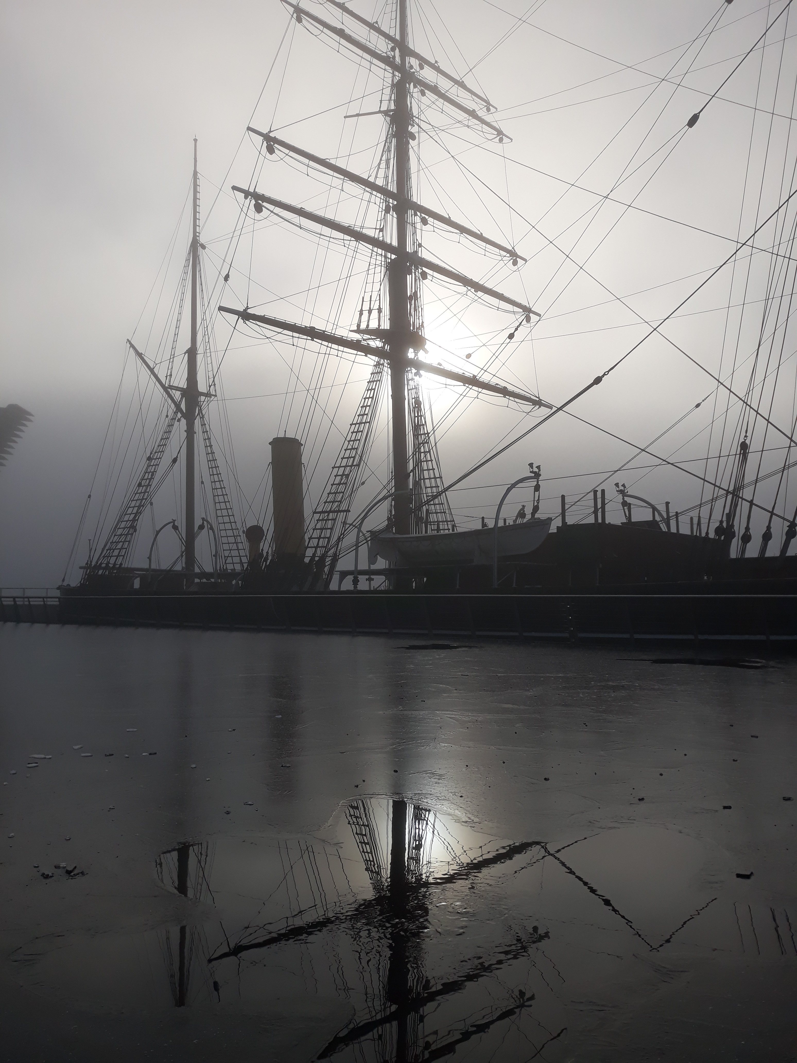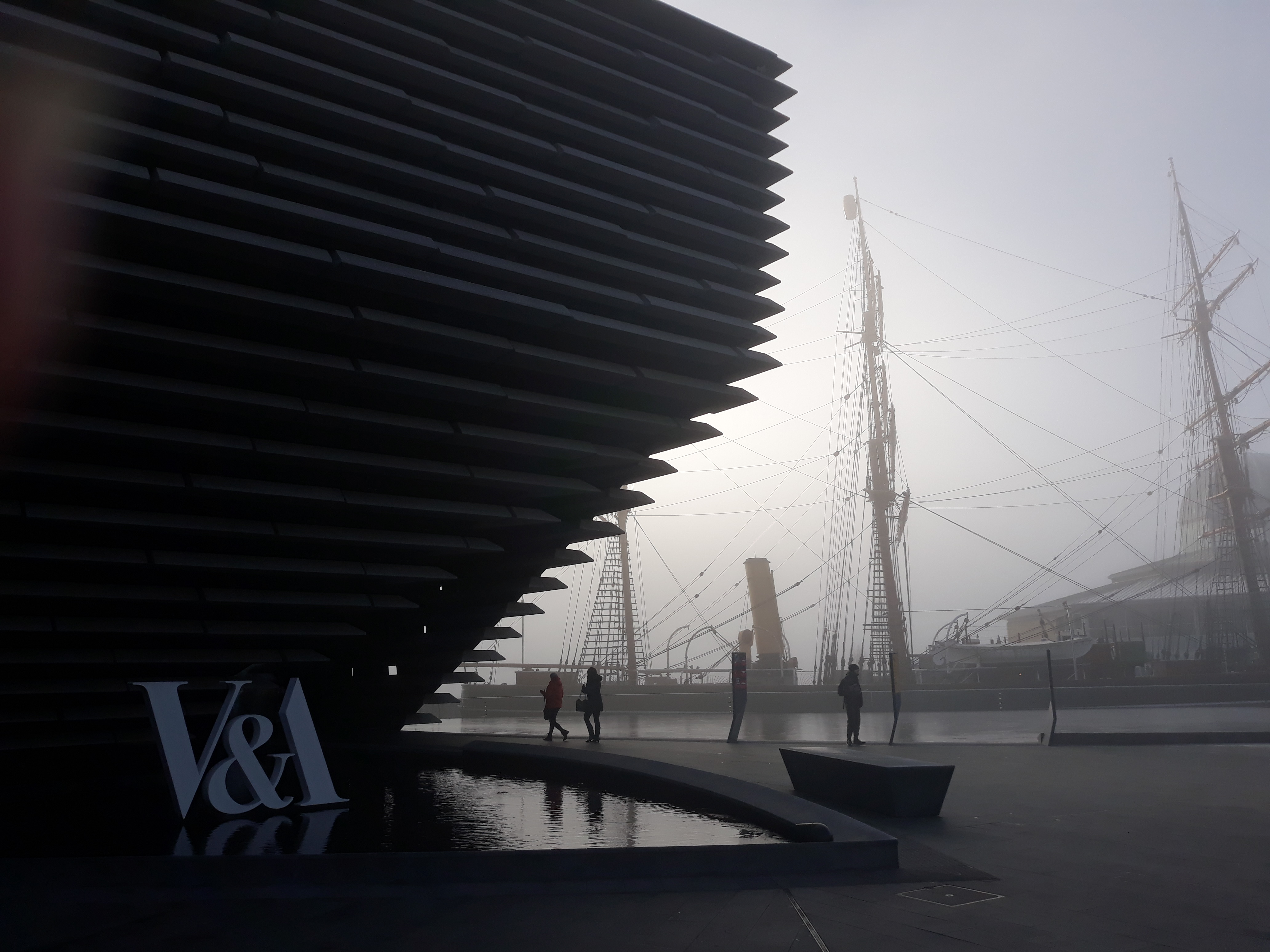 It was a stunning, if bitterly cold, day for my first visit to the V&A Dundee, with the impressive building looming out of the freezing fog, and the RSS Discovery appropriately enough reflected in (very thin) ice.